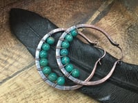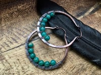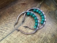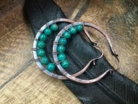 A hand forged solid copper hoops with thick 10 gauge wire and ornate them with Amazonite stones.
