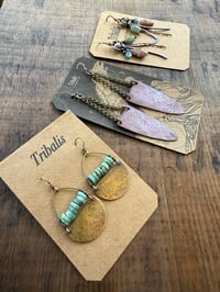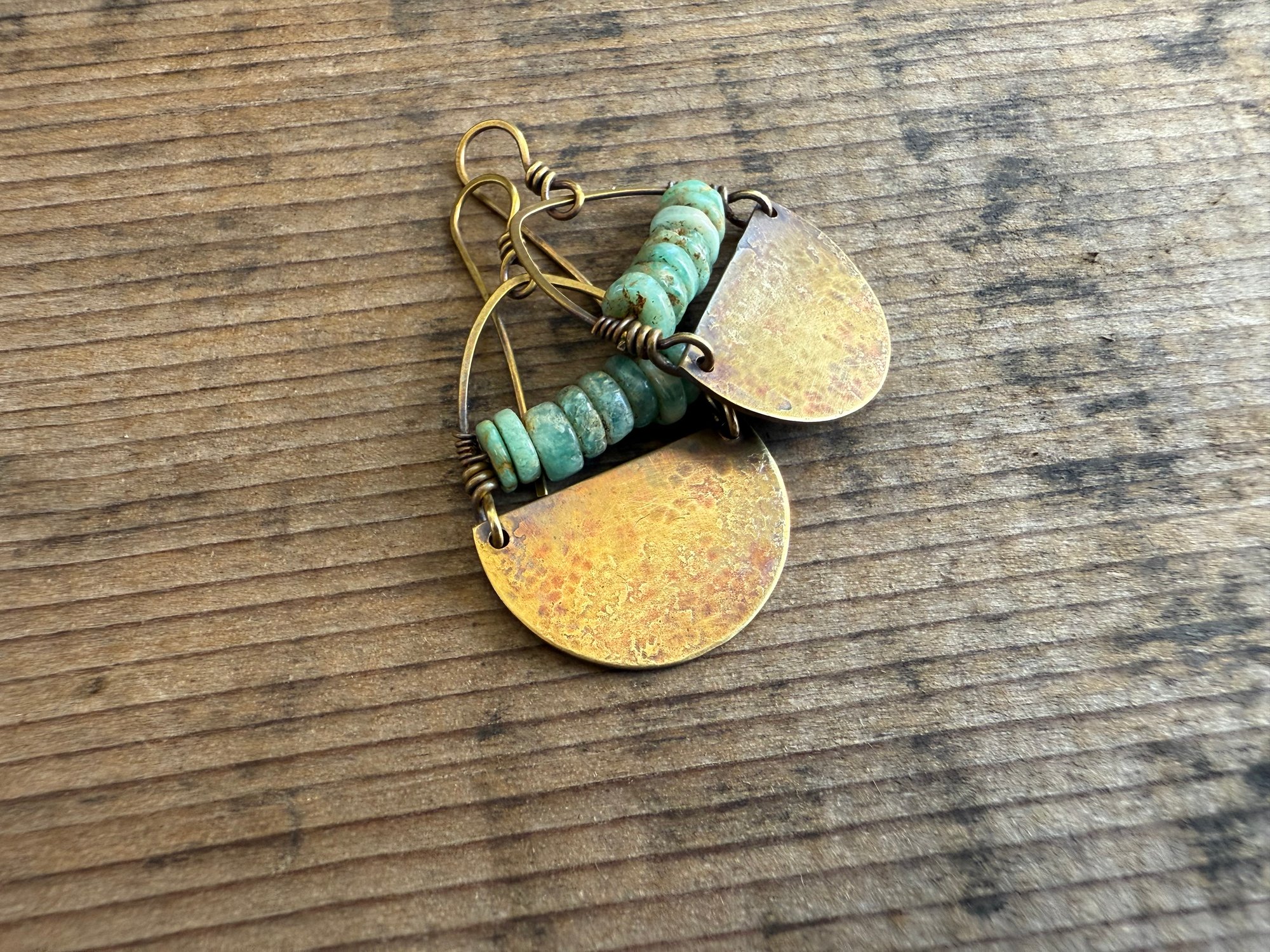A simply solid brass half circle ornate above with Chrysoprase stones.