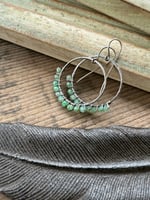 Chrysoprase stones wrapped around sterling silver loops.