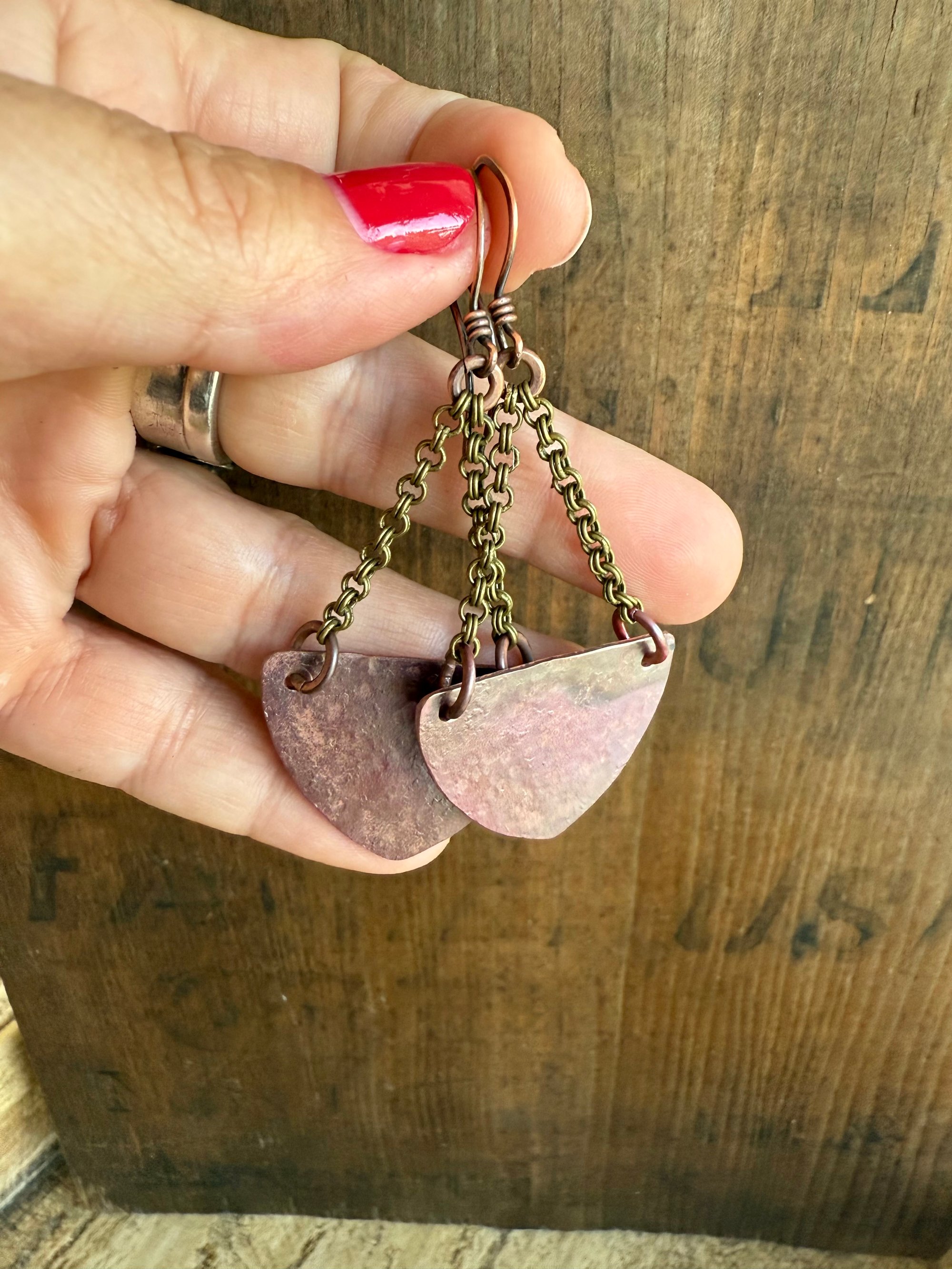 Copy of Fire Patina Triangular Mixed Metal earrings/ n22