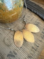 Each part of the front of the necklace was handmade by me by cutting, texturing, polishing, oxidizing and polishing again solid brass metal.