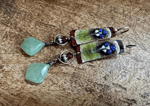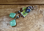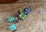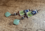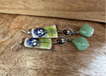 Unique artisan floral enamel focal is ornate with an Aventurine stone dangling from a Karen Hill Tribe bead paired with a Hessonite Garnet. All metal used for wrap the bead, as well the ear wires is sterling. Enamel is powder glass melted into copper base.