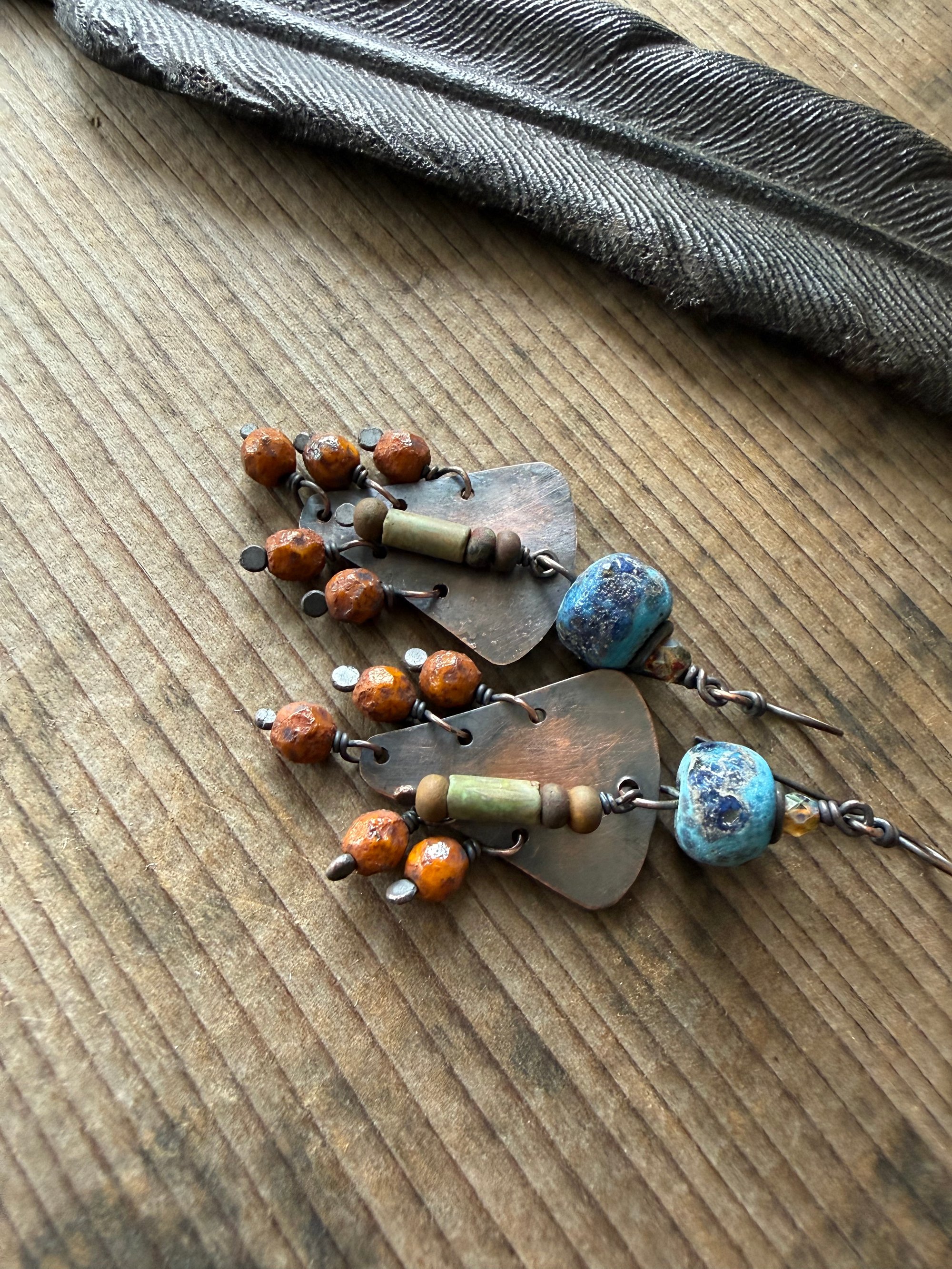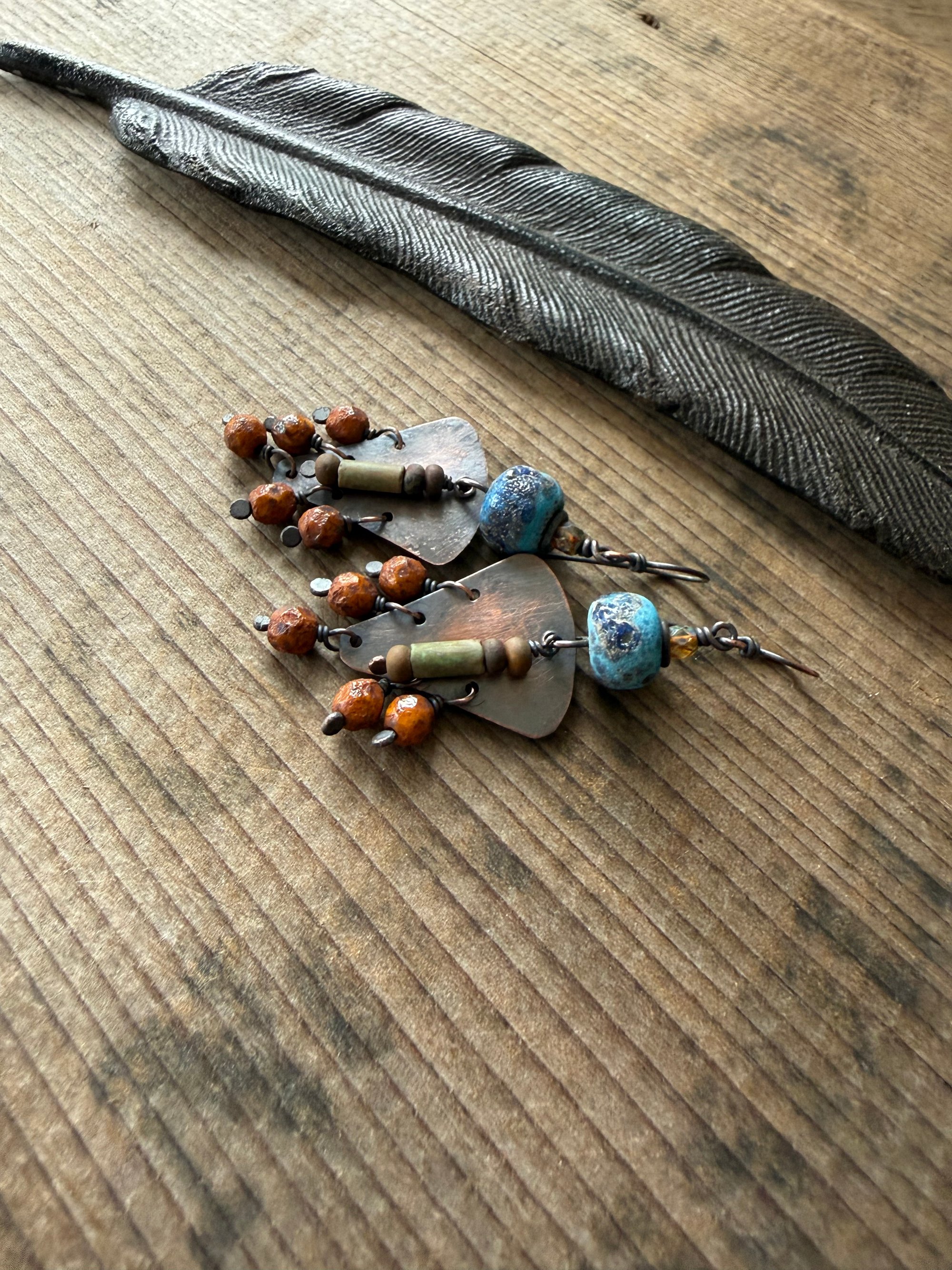 Artisan lamp work, Czech glass, copper.