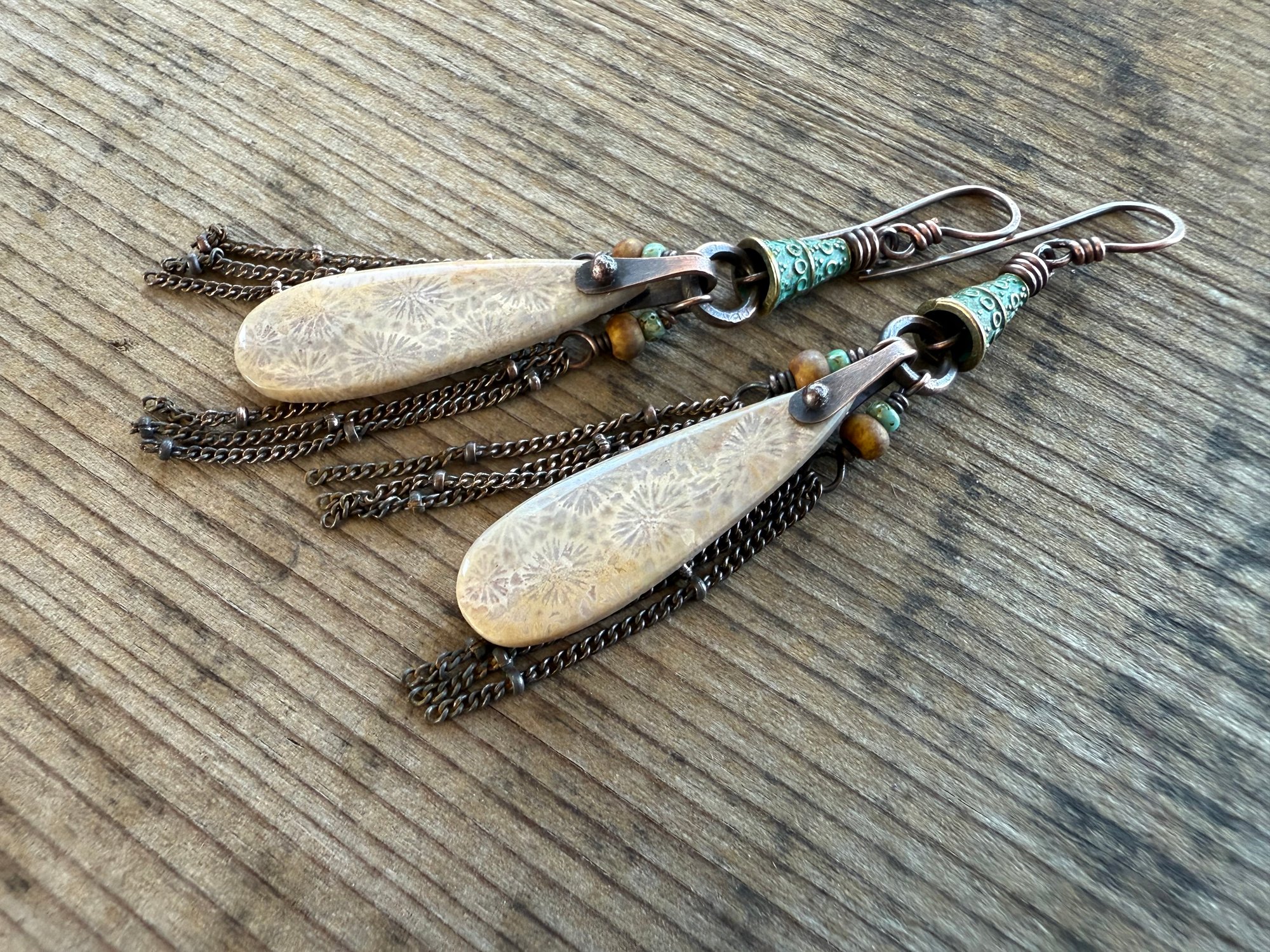 Bonita - Fossil Coral Bohemian earrings/ n142