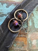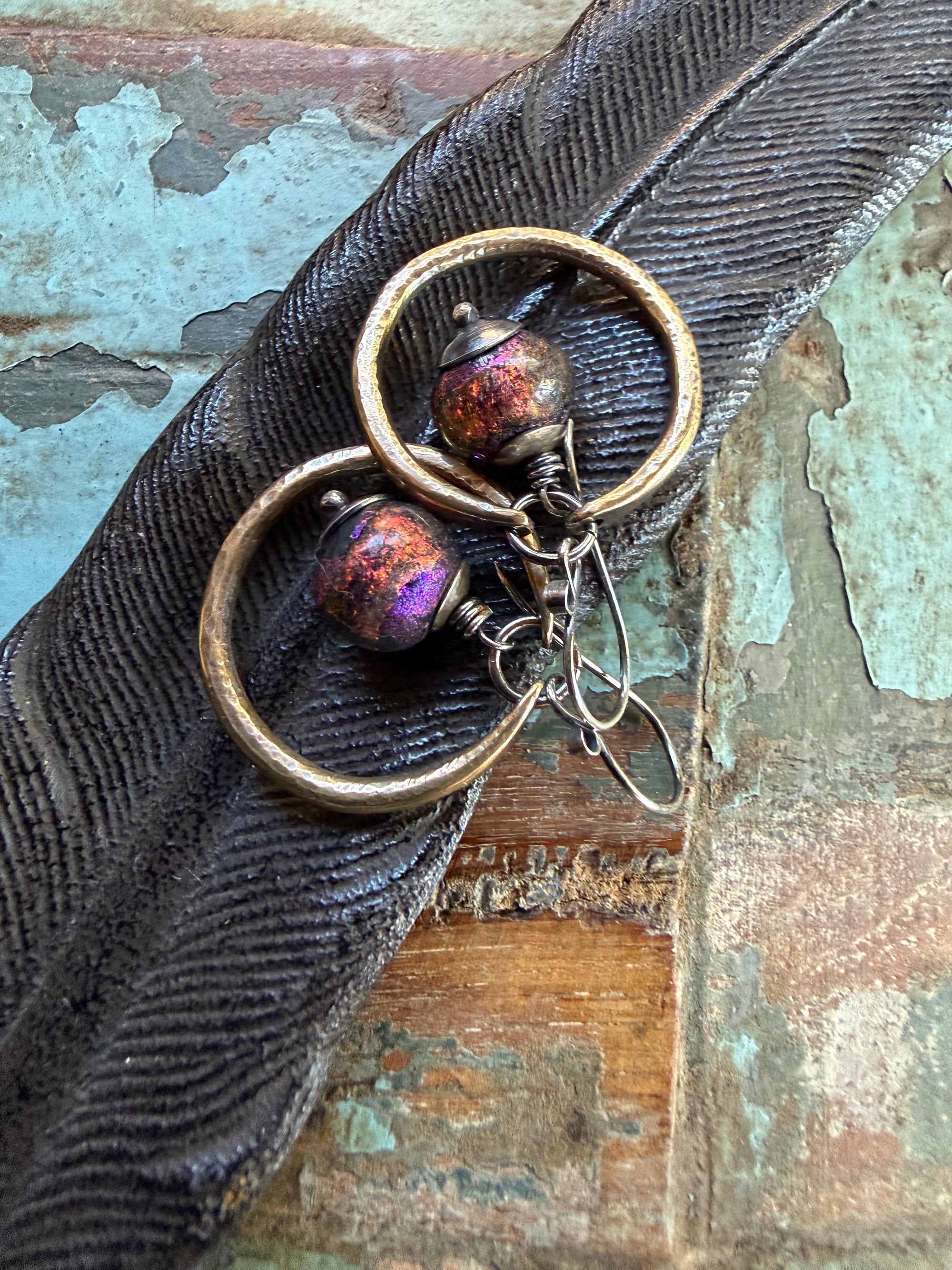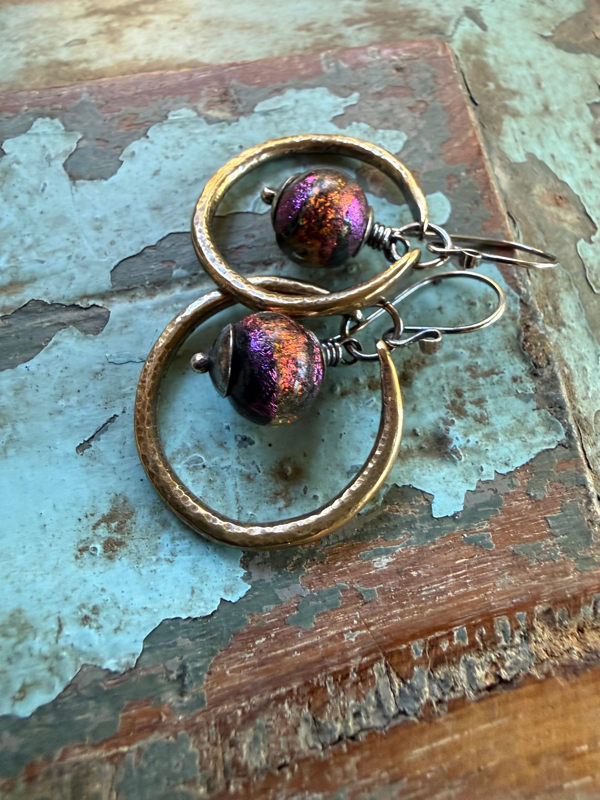 The hoops are hand crafted with solid brass. The other metal is sterling for bead cap, jump ring, wire and ear wires. Finished with sterling ear wires.