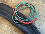 Seed glass beads, seeds of love, and two solid sterling silver Karen Hill Tribe beads, one of them is a flower.