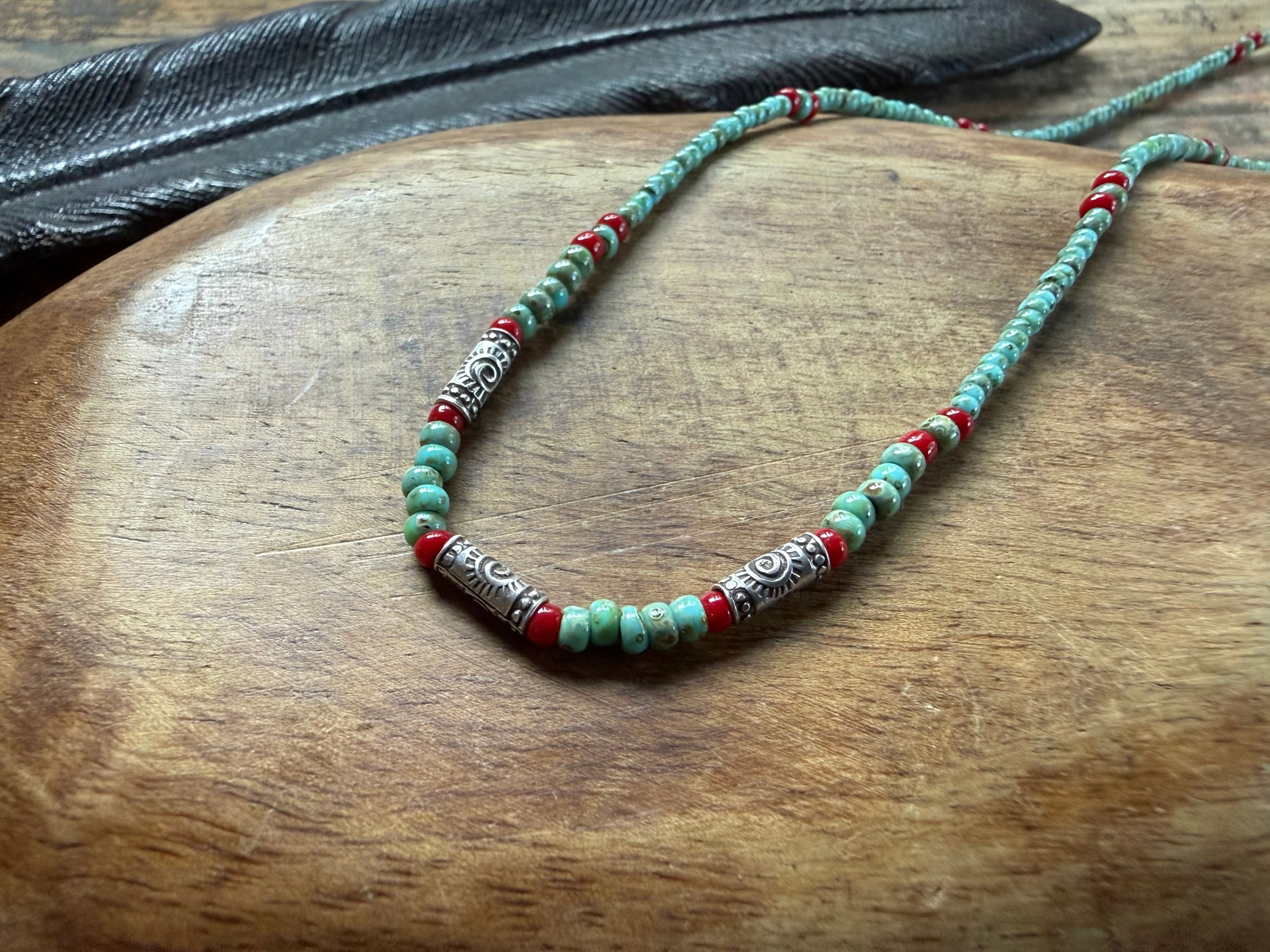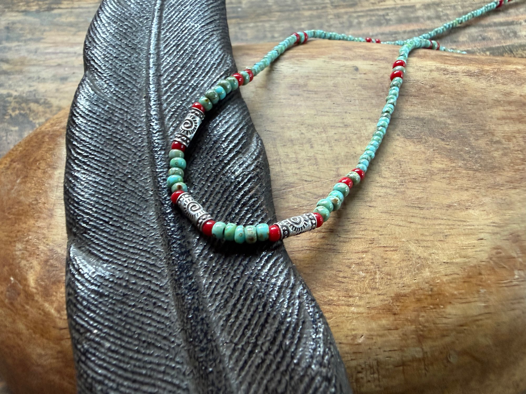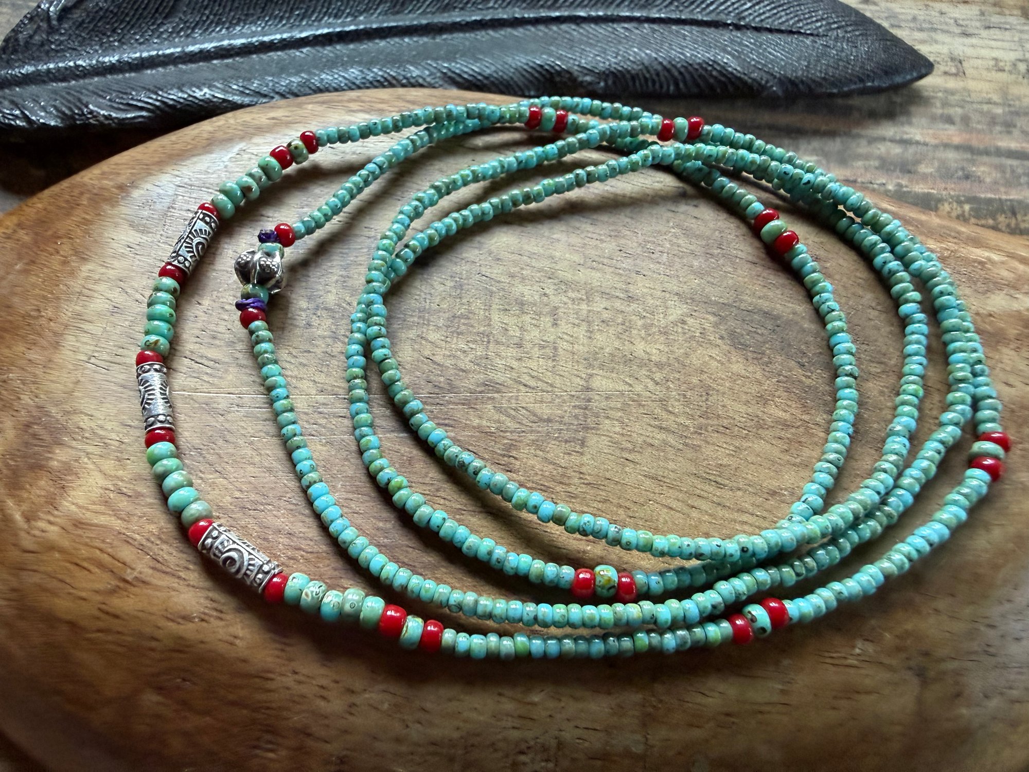 Seed beads and sterling silver necklace / n89